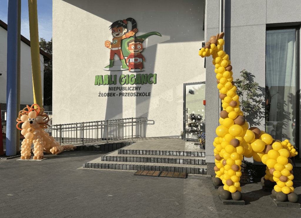 Dla fanów dzikiej przyrody przygotowaliśmy ekipę prosto z Safari. 🦒 Uśmiechnięta żyrafa o imponującej wysokości zaglądała dzieciom w okna, a towarzyszył jej radosny lew z bujną, pomarańczową grzywą. ✨ Takie postacie nie tylko zdobią wejście, ale stają się częścią przedszkolnych opowieści i wspólnych zabaw.